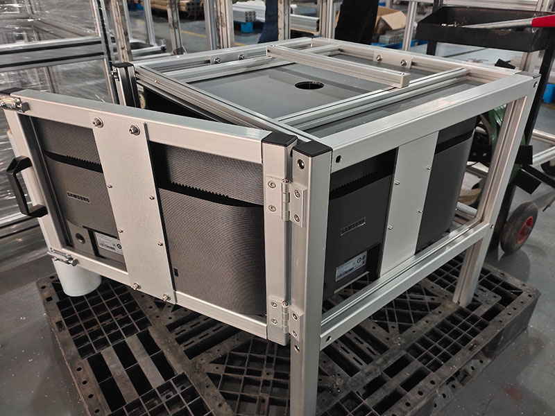 鋁型材框架制作的實驗柜,四面安裝液晶顯示器,內部放置實驗動物,觀察動物在播放不同畫面時候的狀態。