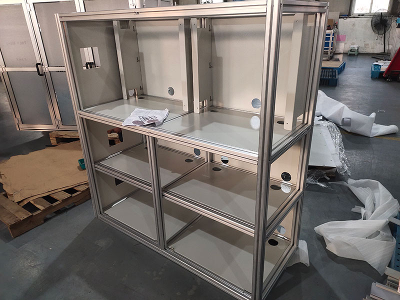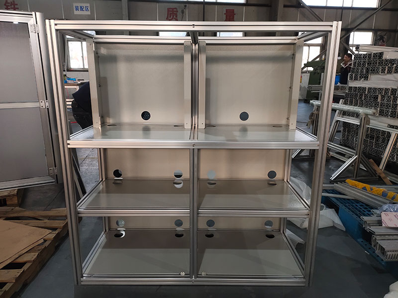 控制柜的主要功能是放置電氣設備,因此,需要選擇規(guī)格合適鋁型材進行制造,例如4040型材和4080型材,以及規(guī)格較大的6060型材、8080型材、80120型材、9090型材、100100型材。型材的具體規(guī)格可根據(jù)不同的承重要求選擇。
