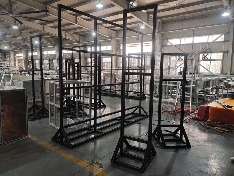 3、拓展性強:鋁型材展示架可以根據使用場景實現多種功能性需求,可以安裝移動腳輪、電子電氣組件、控制系統等。