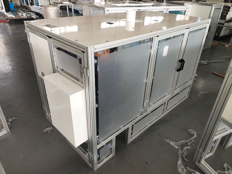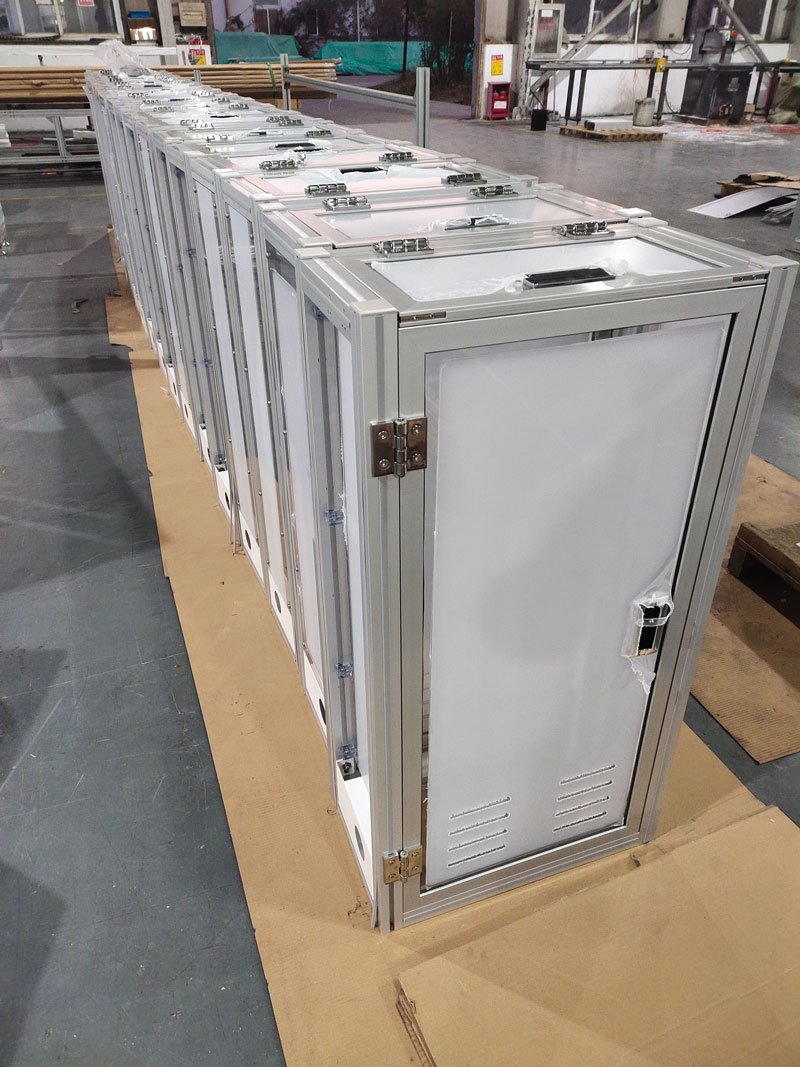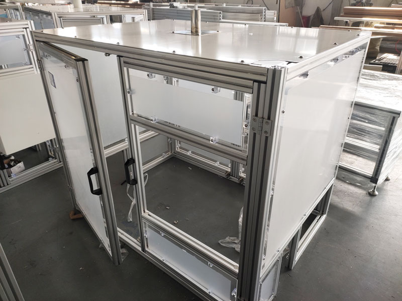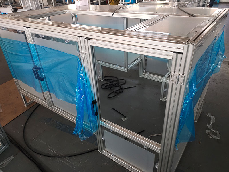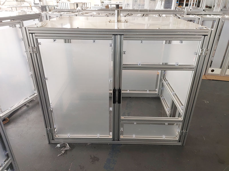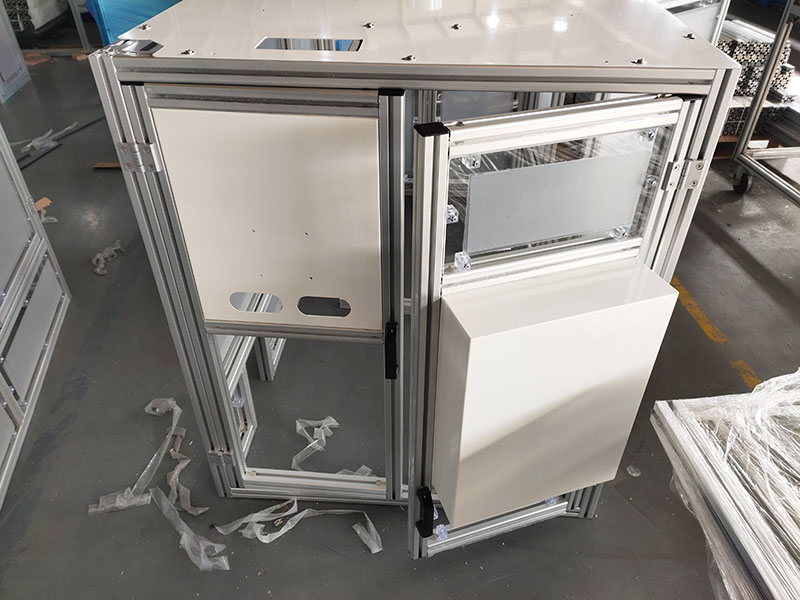 鋁型材設備安全防護罩是為保護操作者人身安全而安裝在機械設備上的保護裝置,其功能是將人與設備的運動零部件隔離開,使人體任何部位都不能直接進人可能引起機械傷害的危險區域、多采用金屬材料制造,以滿足強度要求。常見有封閉結構、網狀結構或孔眼結構。一般多制成固定式,在經常需要調節或維護的機械部位也常用開啟式或可調式。
