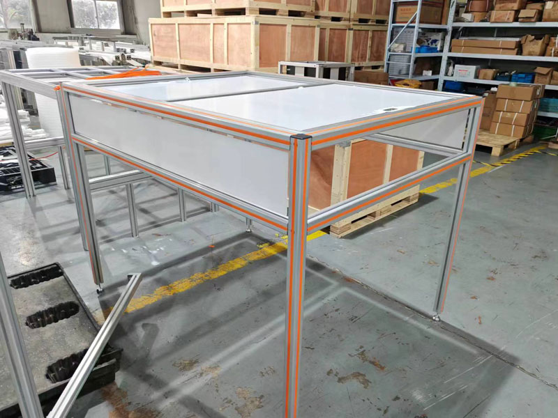鋁型材防護罩是一種以工業(yè)鋁型材為設備外罩外殼,多見于各種非標機械設備的外罩,各種輸送線流水線外罩,大型潔凈棚外罩,焊房大型護罩等,能起到區(qū)域隔離,靜音防塵,保護設備及生產(chǎn)人員安全。鋁型材制作的防塵罩的樣式有很多,有些是密封的,可以起到隔離噪音的作用,凈化車間環(huán)境。有些是帶有開關門的,不僅可以起到防塵的作用,而且還利于后期維修工作。亞克力板也有透明的,茶色,紅色等顏色可以選擇。
